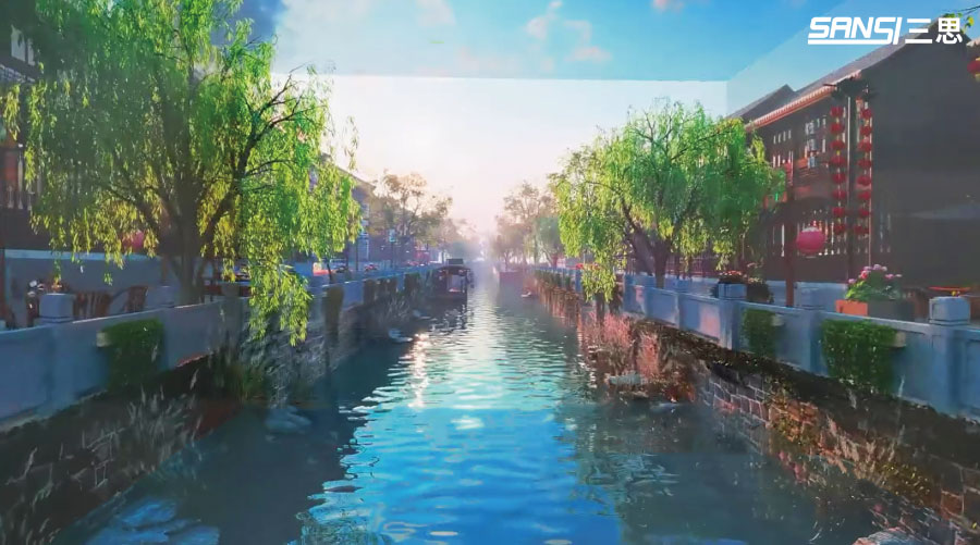 三思元宇宙是基于LED顯示技術、音響技術、VR技術、多通道同步融合技術,結合“數字孿生”技術等多項技術于一體,仿真實景呈現,帶來身臨其境的沉浸式震撼體驗,實現實時全景畫面與虛擬空間的完美融合。