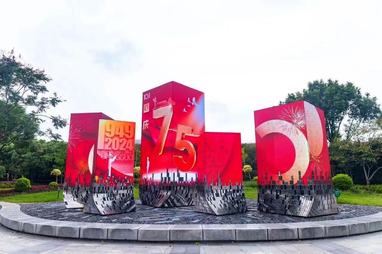 位于經開區立德道的無錫市民中心地鐵口旁,中間大氣端莊的金色數字“75”,以上海三思異形LED顯示、裸眼3D等創新技術,搭配酷炫的3D剪紙翻頁、數字浮雕效果,記錄著祖國母親走過的歲月。