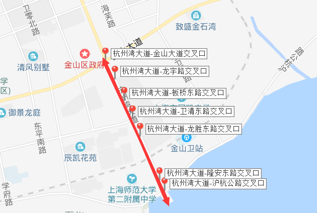 經過各部門的共同努力,杭州灣大道上林立的各式路名牌、信號燈等桿件逐漸合并,煥然一新,達到了“線清、桿合、景美”的效果。