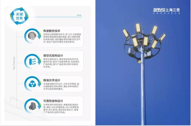 三思LED陶瓷散熱高桿燈關鍵優勢