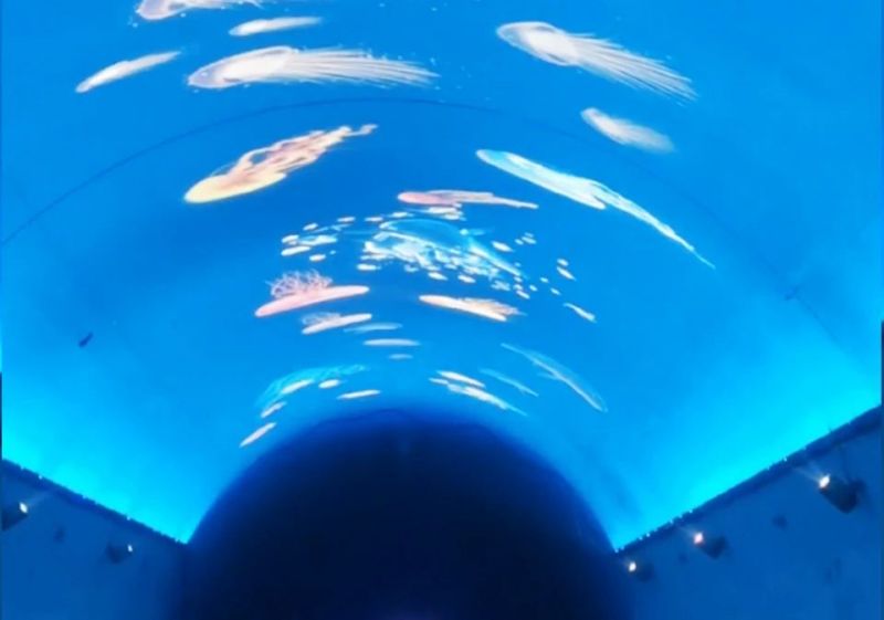 木寨嶺隧道全線合理設置了4段處特殊燈光帶,每段長200米,借助不同的燈光和圖案變化,通過LED智慧景觀照明以及控制系統組合,“藍天白云”、“宇宙星空”“海底世界”“春節元素”“甘肅飛天元素”等主題和自然景象在隧道內呈現,改變隧道內單調的視覺感,緩解駕駛員的視覺疲勞,不但進一步提升駕乘安全,也成為穿林過壑的打卡地。