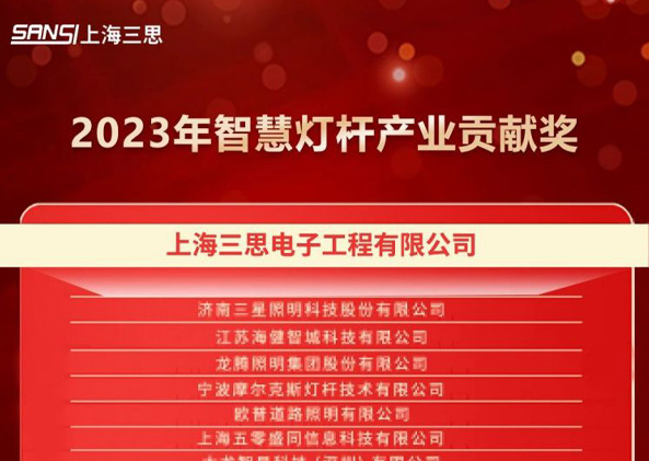 公司動態 /2024-01-312024年1月10日,中國智慧燈桿產業頗具有影響力獎項——智慧燈桿產業年度大獎正式出爐。上海三思電子工程有限公司憑借在智慧燈桿領域的綜合實力及對行業的貢獻度,摘得“智慧燈桿產業貢獻獎”和“智慧燈桿產業創新獎”兩項年度大獎!