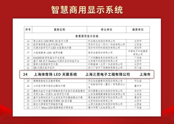 喜報!三思-上海體育館LED天幕系統入選工信部2024年度視聽系統典型案例!