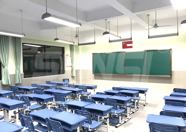 教室黑板燈通常采用熒光燈或LED燈等光源,其照度和照射角度需要根據(jù)黑板大小、位置和學生視線等因素進行科學計算和調(diào)整。在夜間作業(yè)時,黑板燈需要提供足夠的亮度和均勻的照明效果,以確保學生不會因為視力問題而影響學習效果。
