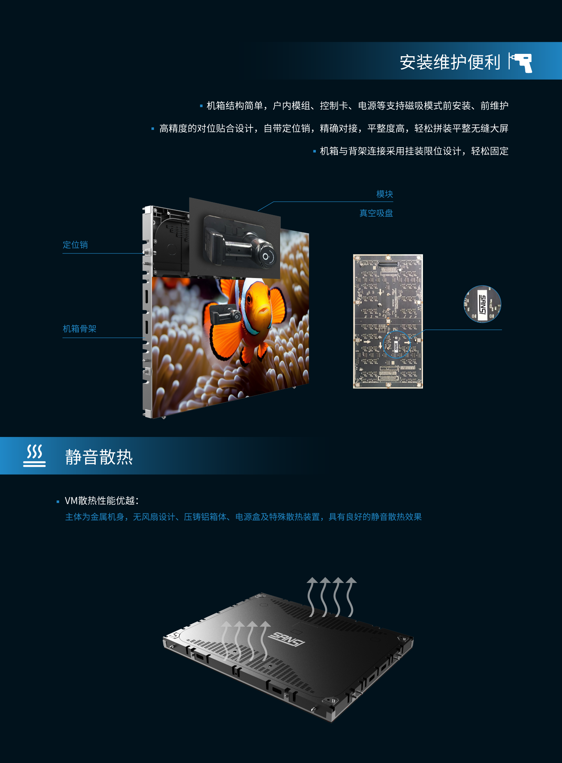 VM系列是三思小間距室內全彩顯示屏,色彩豐富,壓鑄鋁機箱纖薄輕巧,安裝方便,適用于室內固裝屏、會議室、多功能展廳館、多媒體等各種場合。